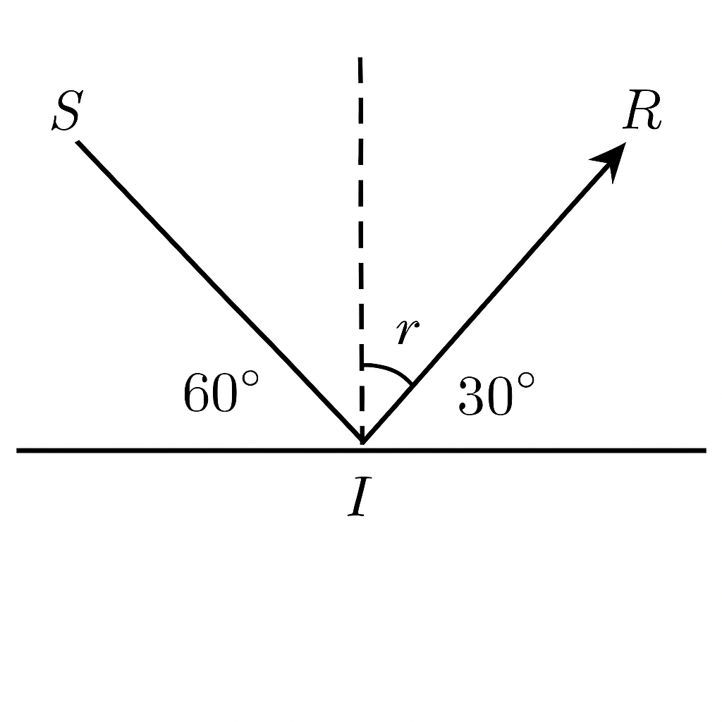 chiếu 1 tia sáng SI hợp vs phương nằm ngang một góc 60độ , vẽ tia phản xạ và tính góc phản xạ