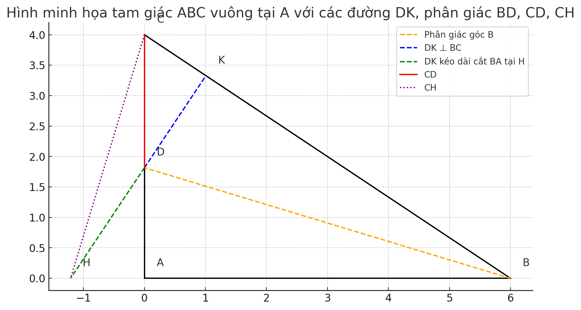 (K thuộc BC ).KD kéo dài các tia BA tại H