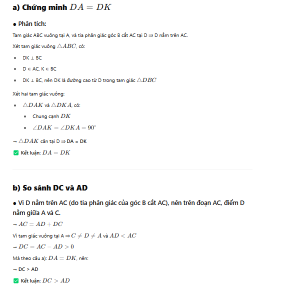 Cho tam giác ABC vuông tại A ,tia phân giác của góc B cắt AC tại D.Vẽ DK vuông góc với BC