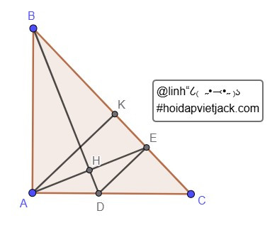 Cho ΔABC vuông tại A, kẻ phân giác BD của góc B (D thuộc AC).kẻ AH ⊥ BD, (H thuộc BD), AH cắt BC tại E.