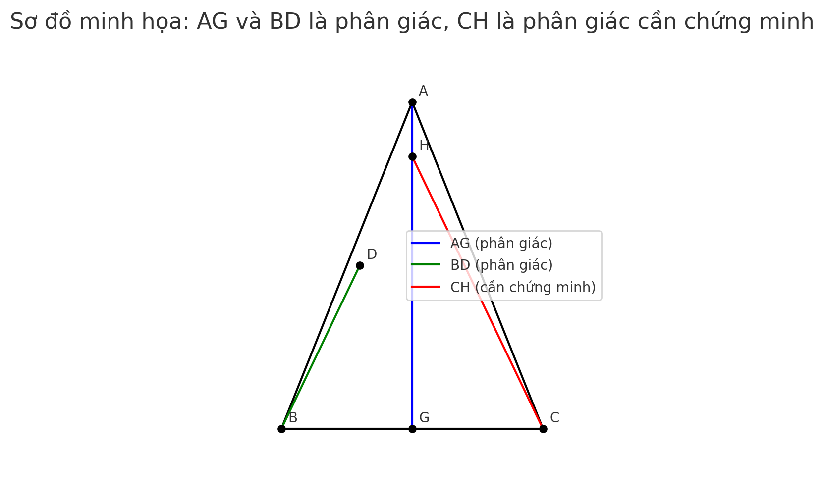 b) Gọi H là giao điểm của AG và BD, chứng minh CH là phân giác của tam giác ABC