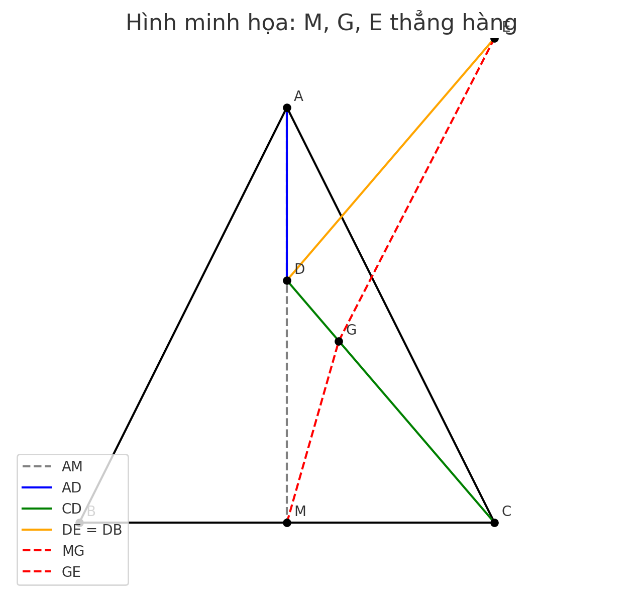 → Khi dựng hình, bạn sẽ thấy M, G, E thẳng hàng do các yếu tố đối xứng và chia đoạn hài hòa nhau.