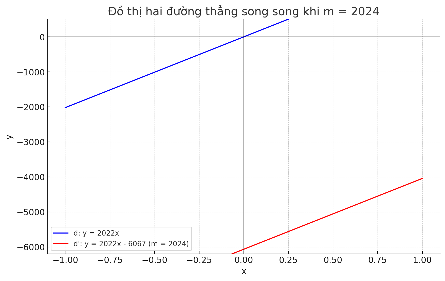 Vậy `m = 2024` thì đường thẳng `(d')` song song với đường thẳng `y = 2022x.`