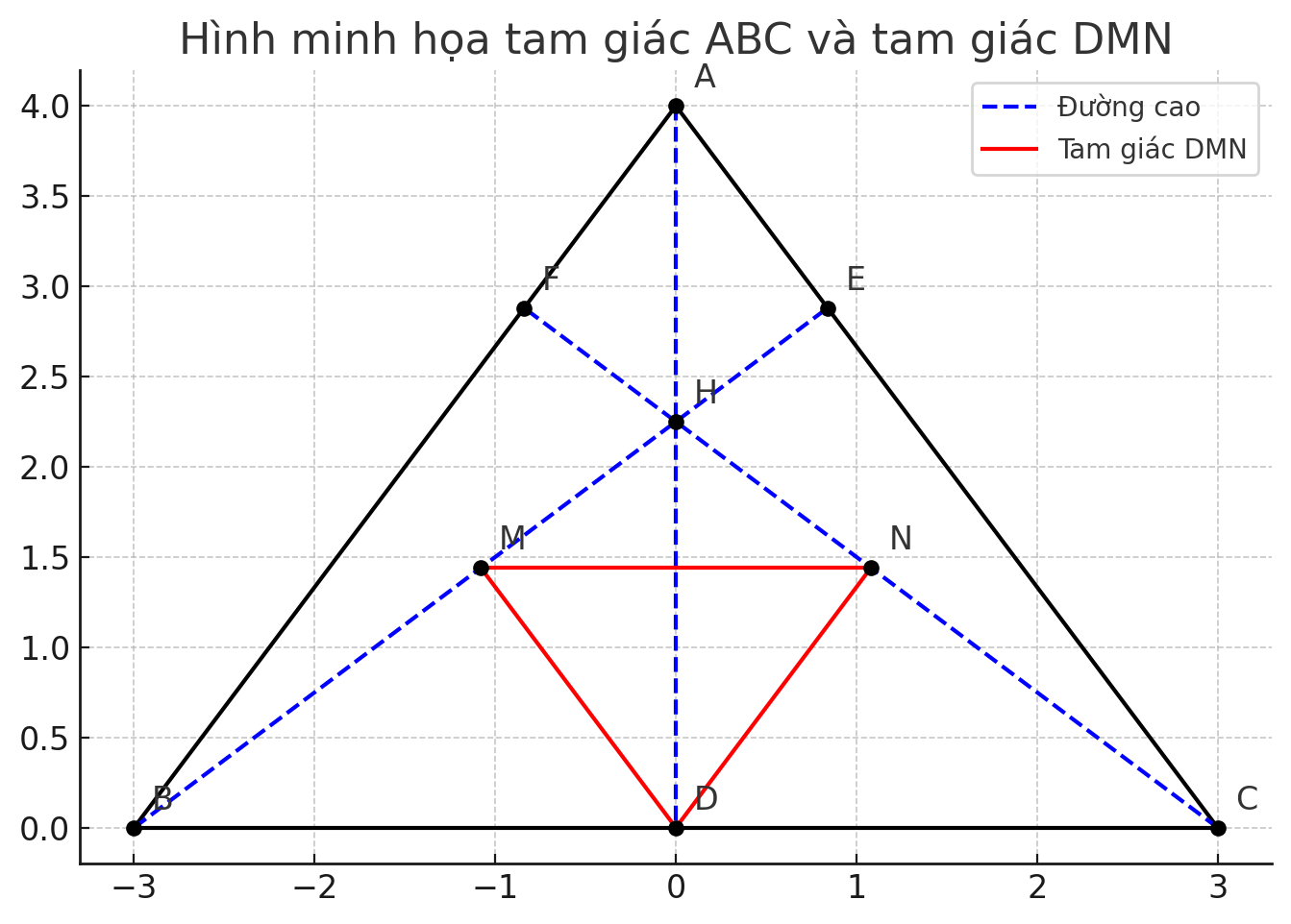 ⇒ Các điểm D,E,FD, E, FD,E,F lần lượt là chân đường cao từ A,B,CA, B, CA,B,C.