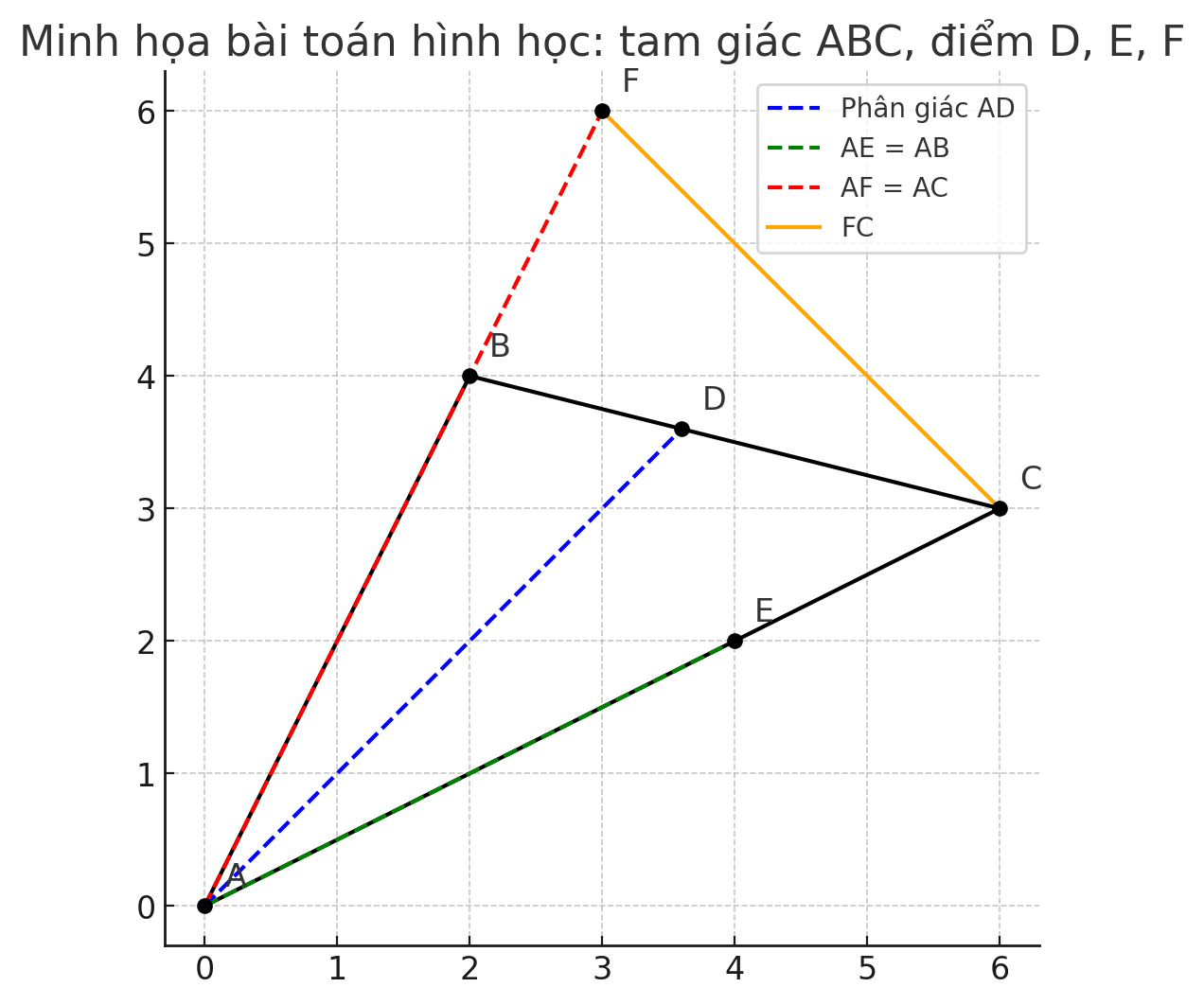 Góc ∠FAD = ∠CAD (vì AD là phân giác góc A)