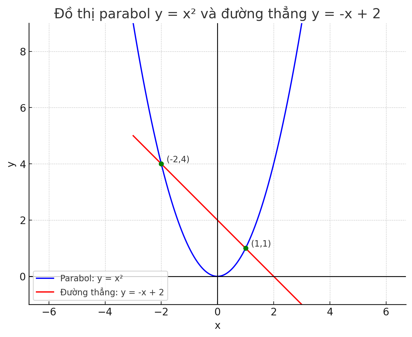 Ta tìm giao điểm của parabol và đường thẳng bằng cách giải hệ phương trình: