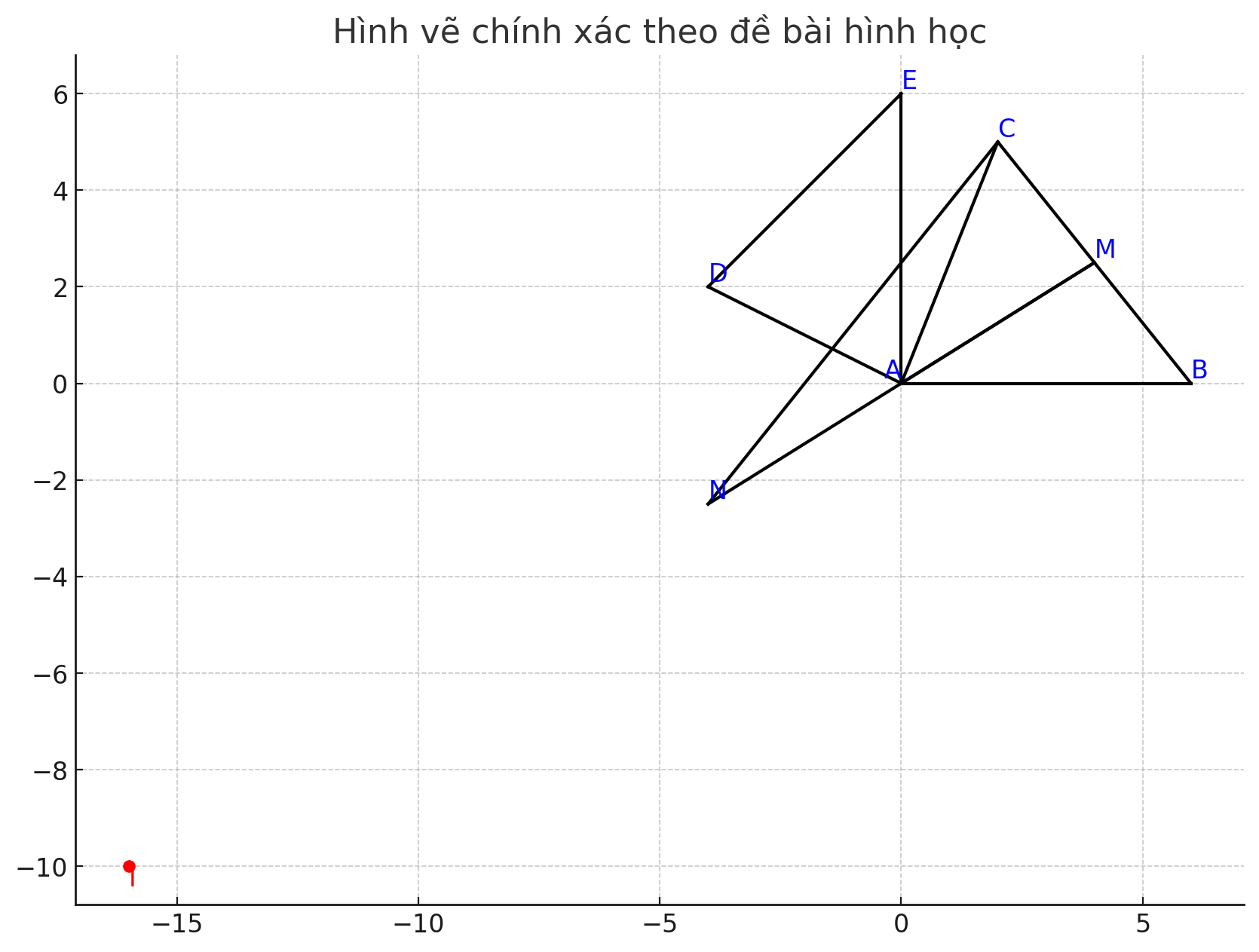 - AE⊥AB, AE=AB ⇒ tam giác ABE vuông cân tại E.