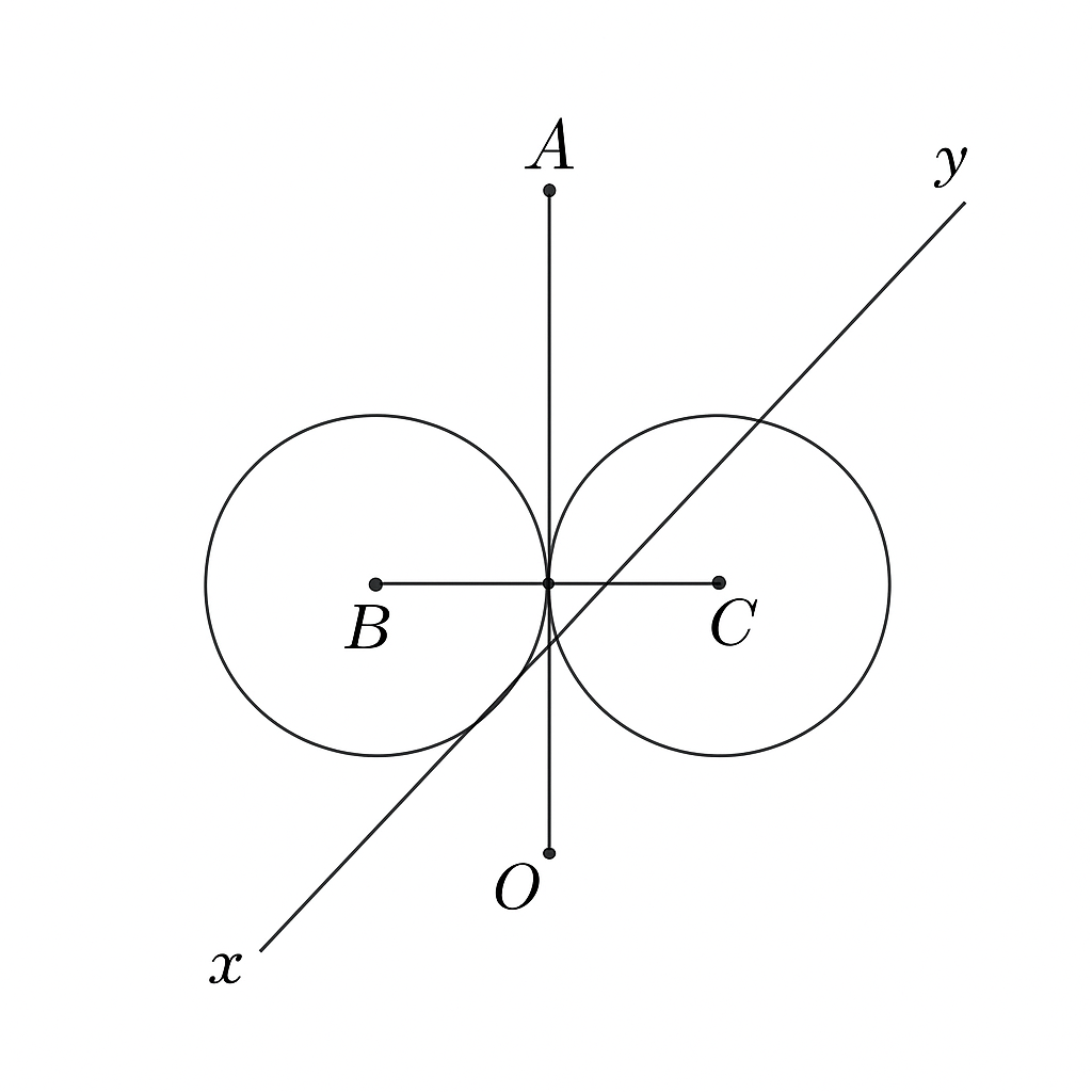 Vì OB = OC và hai đường tròn tâm B và C có cùng bán kính nên: