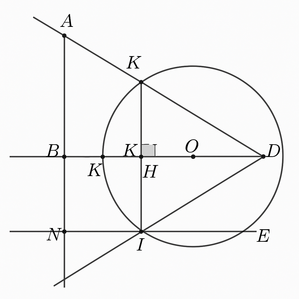 Xét tam giác vuông $ABK$, vuông tại B, có đường cao từ O hạ xuống cạnh AB