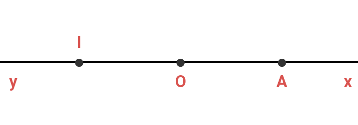 1. Vì điểm $A$ thuộc tia $Ox$ và điểm $I$ thuộc tia $Oy$, mà $Ox$ và $Oy$ là hai tia đối nhau nên điểm $O$ nằm giữa hai điểm $A$ và $I$.