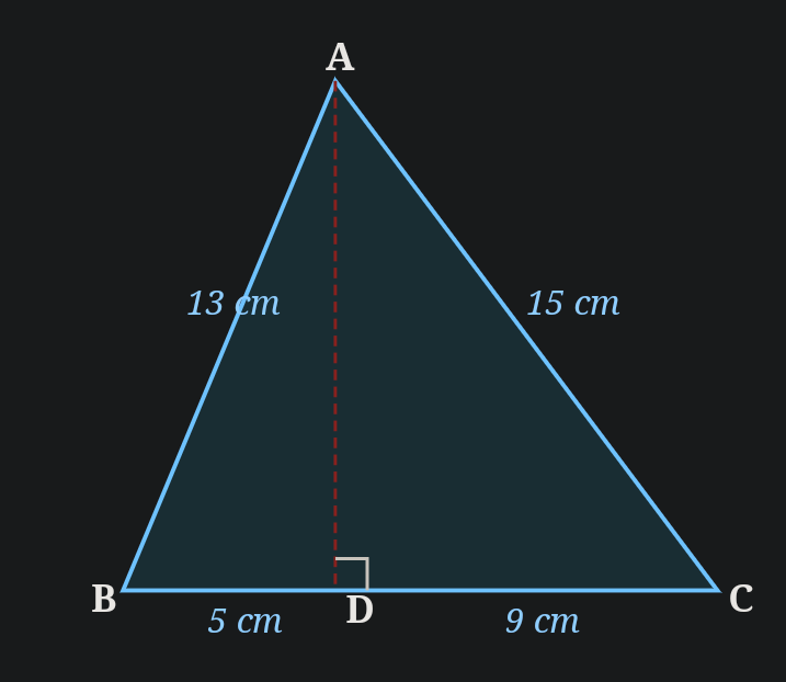 $AD^2 = 13^2 - 5^2 = 169 - 25 = 144$