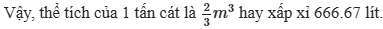 Vậy, thể tích của 1 tấn cát là hay xấp xỉ 666.67 lít.