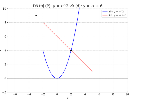 Vậy tọa độ giao điểm là $M(2, 4)$ và $N(-3, 9)$.