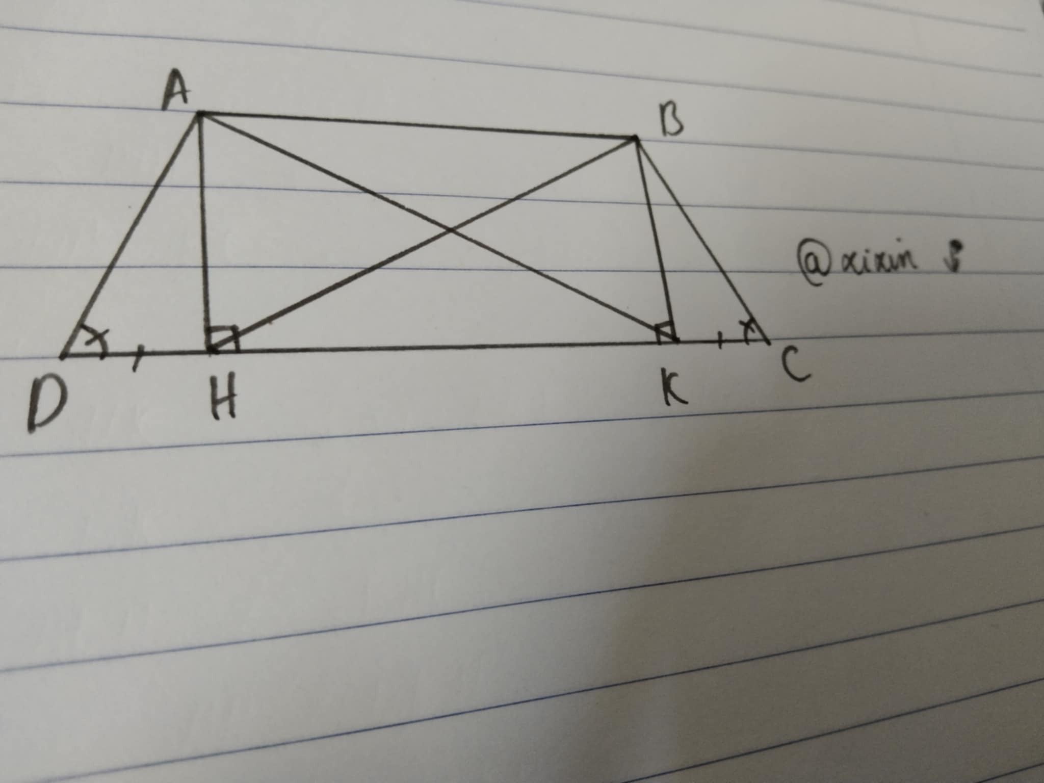 Hình thang cân ABCD có AB //CD, AB < CD. Kẻ các đường cao AH, BK.