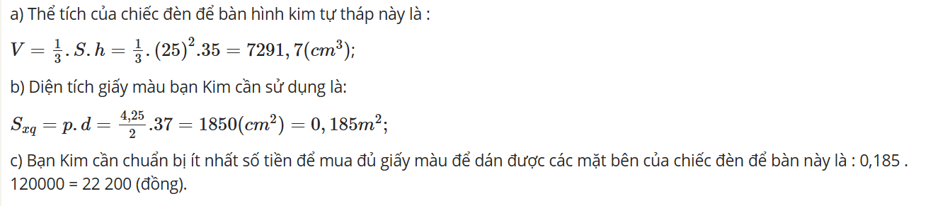 a/ tính thể tích của chiếc đèn để bàn hình kim tự tháp này.