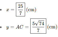 Cho tam giác ABC vuông tại A, đường cao AH. Cho biết BH = 7cm, CH = x, AC = y, AH = 5. Tính x,y