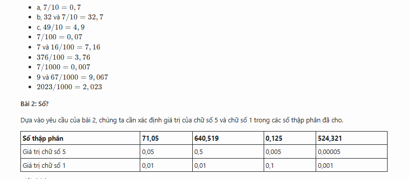| Số thập phân | 71,05 | 640,519 | 0,125 | 524,321 |