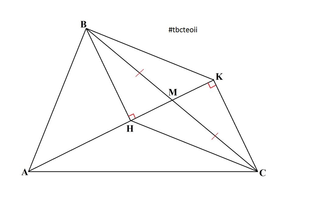 `=>ΔBHM=ΔCKM` ( cạnh huyền - góc nhọn )