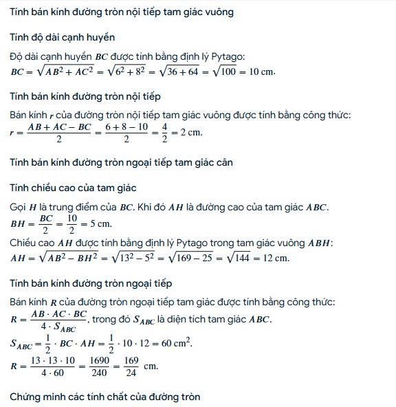 Vậy bán kính đường tròn ngoại tiếp R = 169/24 cm ≈ 7.042 cm.