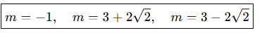 Các giá trị của mmm thỏa mãn để diện tích tam giác bằng 2 là: