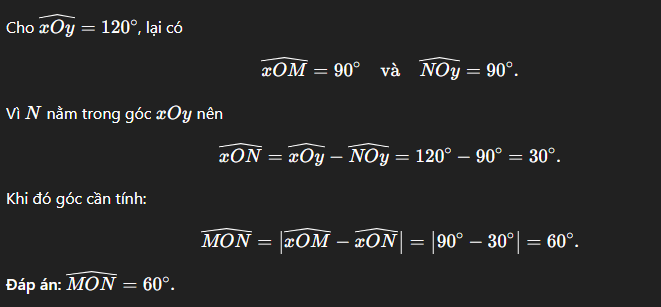 cho góc xOy =120 độ trong góc xOy vẽ các điểm M và N sao cho xOm=NOy=90 độ
