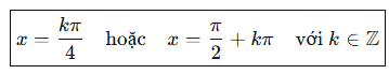 Vậy x = hoặc x = , k, m Z