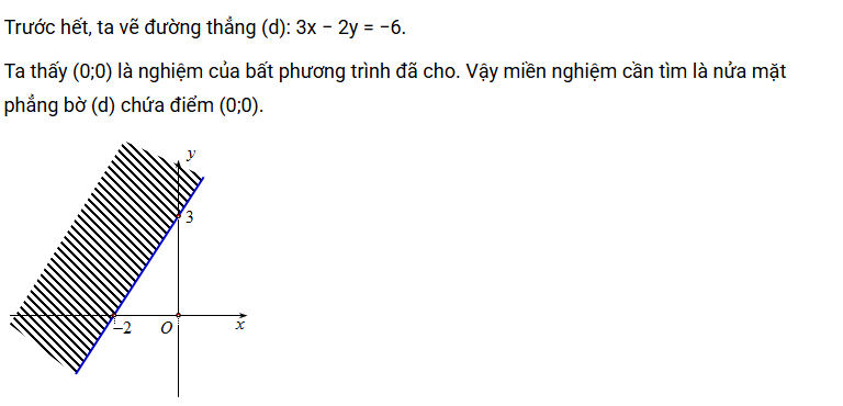 Vậy nửa mặt phẳng chứa gốc tọa độ (và kể cả đường biên) chính là miền nghiệm.