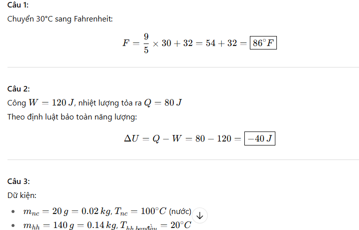 Câu 1. Chuyển đổi nhiệt độ 30°C sang thang nhiệt độ Fahrenheit(F)?