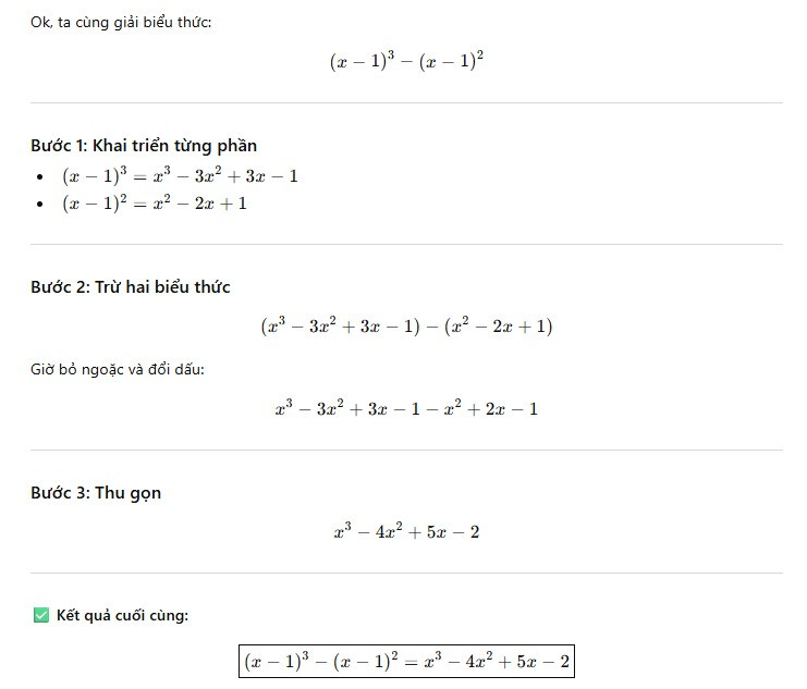 Kết quả cuối cùng là: (x–1)2(x–2)