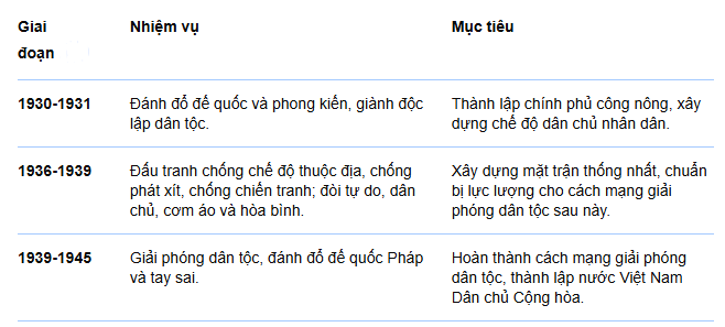 - Cao trào: Cách mạng Tháng Tám 1945, giành độc lập.