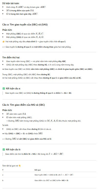 a) Trong (ABC) gọi D là giao điểm của AG và BC