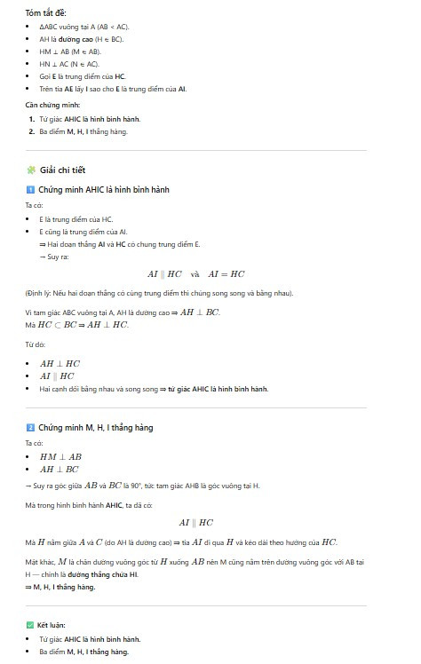 do đó AHIC là hình bình hành ( vì 2 đường chéo cắt nhau tại trung điểm mỗi đường)