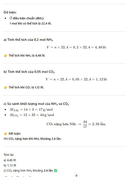 Hay nói cách khác, NH₃ nhẹ hơn CO₂ khoảng 2,6 lần.