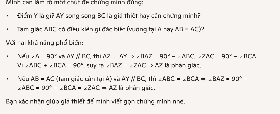 Kể tia Az nằm trong góc Bac sao cho ZAY = 90 độ . chứng minh tia Az là tia phân giác của góc BAc
