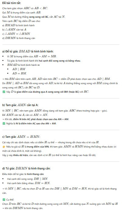 - Đường song song với \( BC \) từ \( M \) cắt \( AC \) tại \( N \), sẽ tạo ra một đoạn \( AN \) có độ dài phù hợp.
