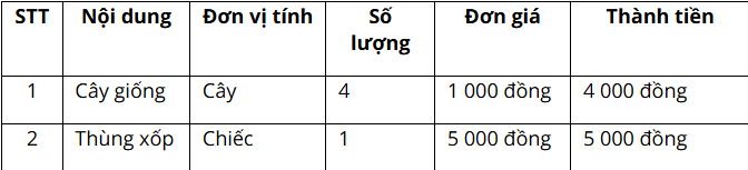 Câu 8 : Lập kế hoạch và tính toán chi phí trồng một loại cây em ưa thích?