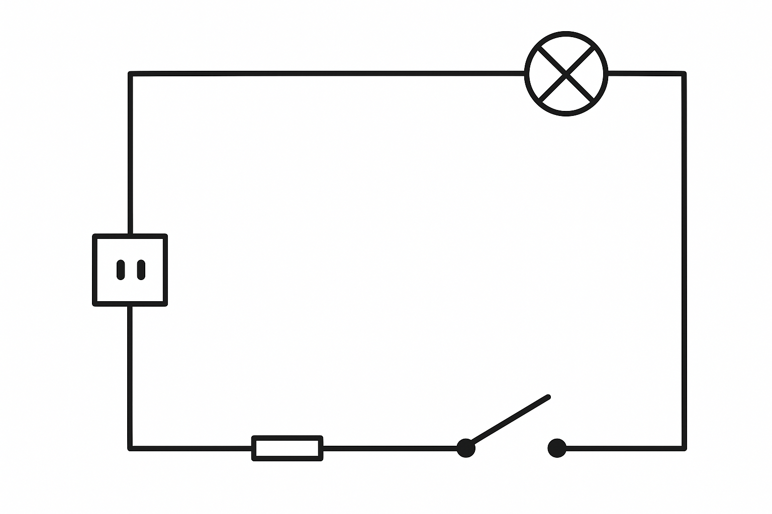 • Khi đóng công tắc, dòng điện đi qua cầu chì đến thiết bị và quay về nguồn.