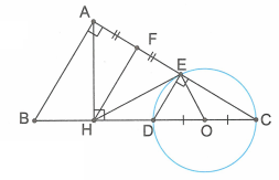 Cho tam giác ABC vuông tại A có AB = 8; AC = 15. Vẽ đường cao AH. Gọi D là điểm đối xứng với B qua H. Vẽ đường tròn đường kính CD cắt AC ở E.