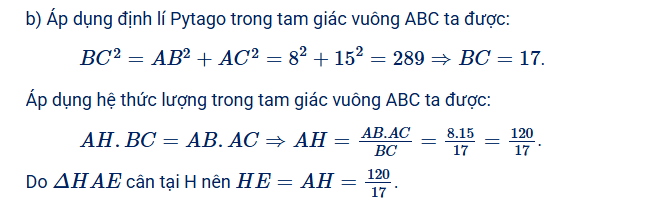 b) Tính độ dài HE