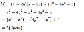 `M = ( x+ 2y ) ( x - 2y) - ( x^2 - 4y^2 - 5 )`