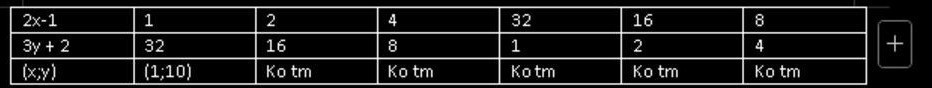 Nếu 2x - 1 = 32 ⇒ 3y + 2 = 1 ⇒ 3y = -1 ⇒ y không phải tự nhiên ❌