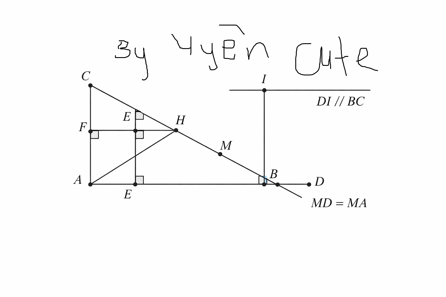 b) Qua điểm D kẻ đường thẳng song song với BC, đường thẳng này cắt tia AH tại I .
