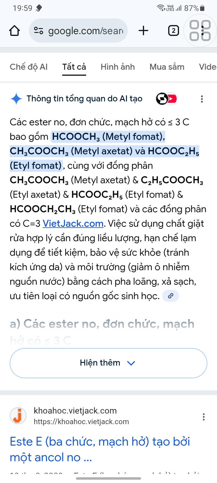 C₂H₄O₂: HCOOCH3— Tên gọi: Metyl fomat.