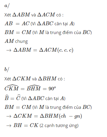 b) Qua M kẻ MH , MK vuông góc với AB, AC (H thuộc AB, K thuộc AC). Chứng minh MH=MK