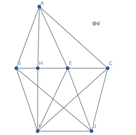 Cho tam giác ABC có AB <AC, kẻ AH vuông góc BC (H BC),Trên tia đối của tia HA lấy điểm K sao cho HK=HA .Gọi E là trung điểm của cạnh BC.