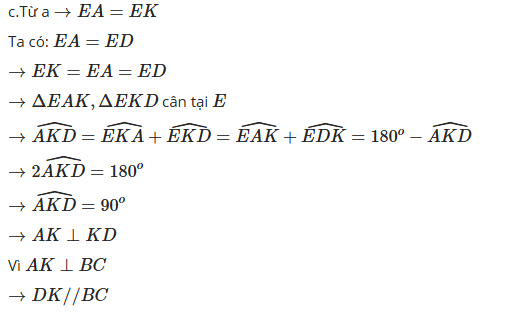 b) Trên tia đối của tia EA lấy điểm D sao cho ED = EA. Chứng minh :AC = BD = CK