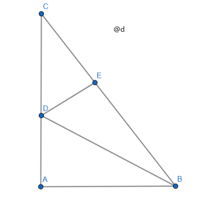 Cho ABC vuông tại A, trên cạnh BC lấy điểm E sao cho BE = BA. Tia phân giác của góc B cắt AC ở D.