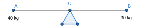 Câu 2: Một thanh gỗ AB dài 2m, có khối lượng không đáng kể, có thể quay quanh một điểm O ở giữa thanh. Hai bạn An (nặng 40kg) và Bình (nặng 30kg) ngồi chơi bập bênh.