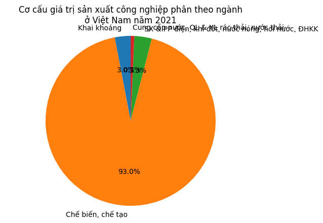 Ghi nhãn:Tên biểu đồ: "Cơ cấu giá trị sản xuất công nghiệp phân theo ngành ở nước ta năm 2021".