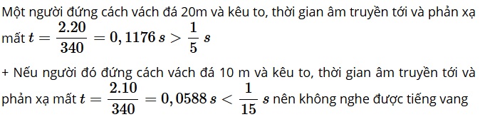 Nếu người đó đứng cách vách đá 10 m và kêu to thì có nghe tiếng vang hay không, vì sao?